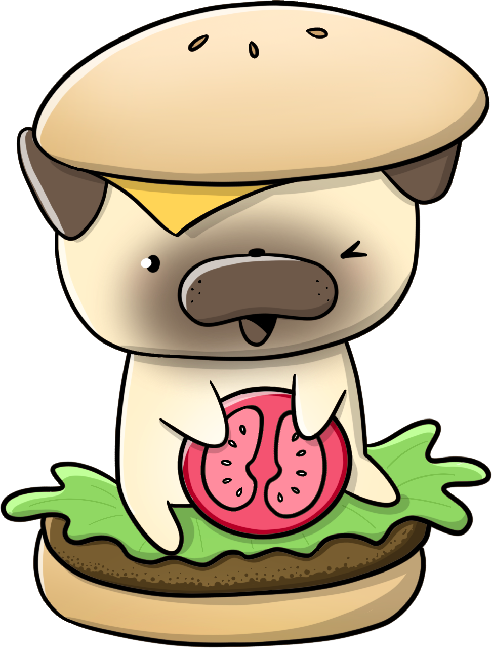 Stickerset Pugs with food - CutieSquad